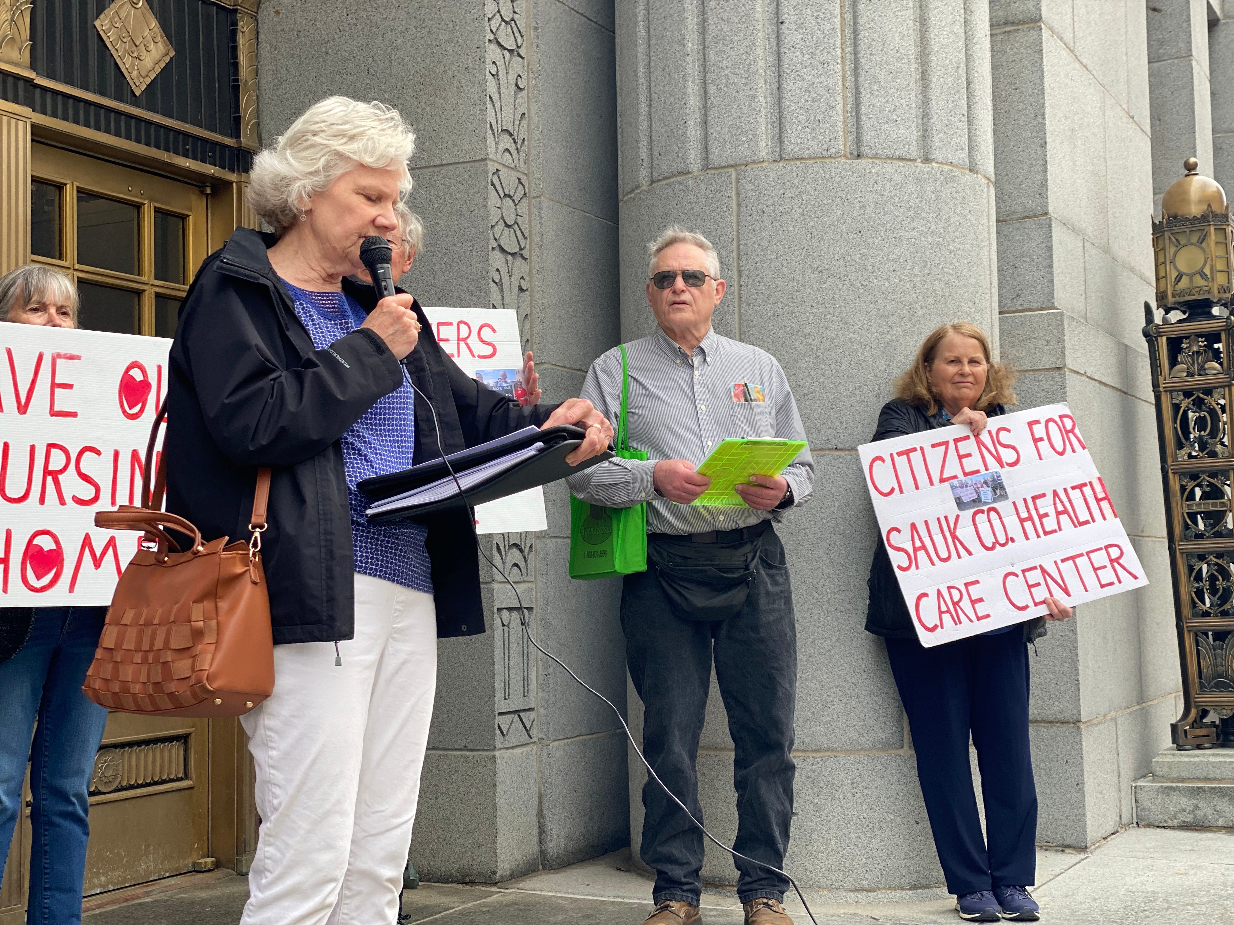 The Sauk County Board of Supervisors seemed taken aback as the room had filled with people, many elderly, carrying handmade signs reading “Save our Nursing Home.”